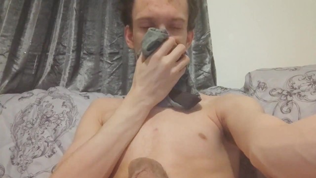 Taking off my boxers, stroking my big cock and sniffing boxers