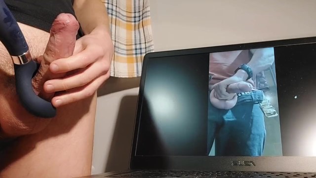 Teen twink wanking dicks with daddy, cumcontrol, hands-free cumshot from a sex toy massager
