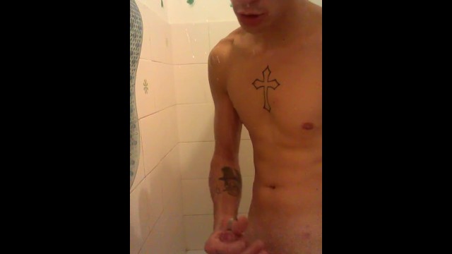 bel twink in doccia con il suo cazzone