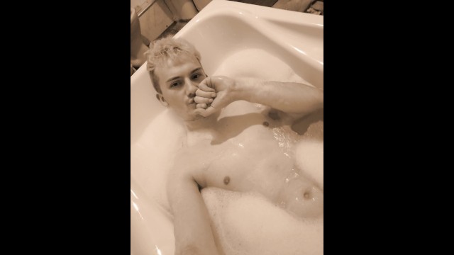 Blonde Twink playing in the bath - cum finish