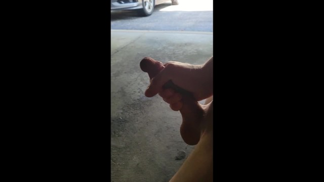Twink boy jerking off and cuming at 3pm in public with the garage door open! Naked twink solo public