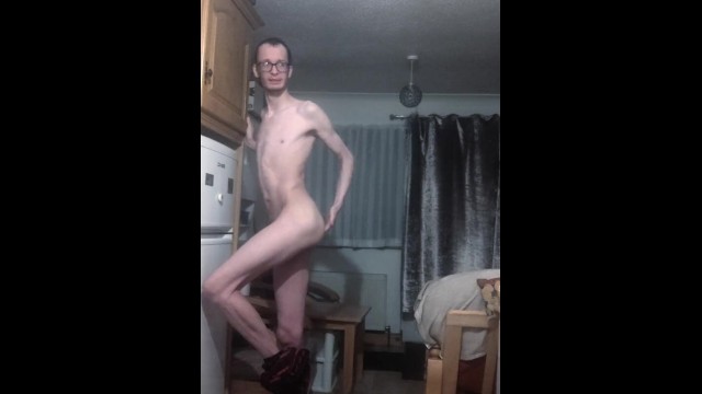 Skinny British chav sneaks into the kitchen to stretch and finger himself while step dad is upstairs
