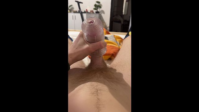 Young Gay Twink Playing With His New Toy. Big Hot Dick, a lot of Cum and Sexy Masturbator