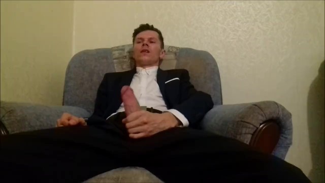 After working in the office, the guy jerks off his cock and ends up in an office suit