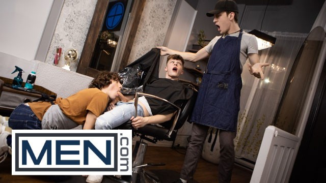 MEN - Sexy Hair Salon Owner Cristiano Sucks Jake Preston's Cock Under The Barber's Cape