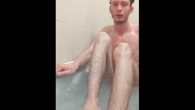 Skinny teen takes a bath and uses shampoo to wash himself