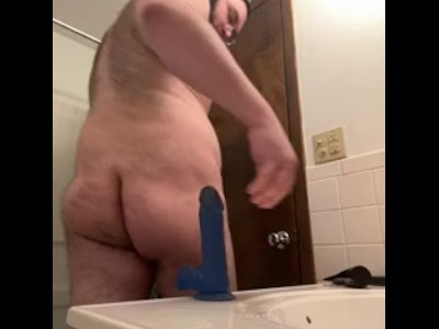 chubby bear riding a dildo in the bathroom