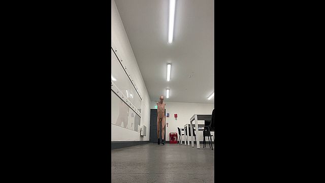 Bald skinny twig performs a big cumshot after running and warming himself up in public place