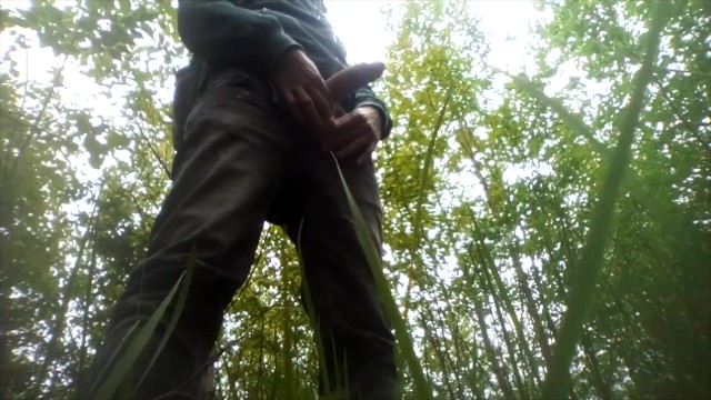 I masturbate my cock outside in the bushes and cum.