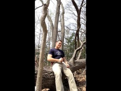 Exhibitionist masturbating in the woods, jerking-off outside