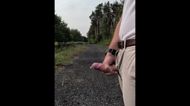 Masturbation and cumshot next to the main road
