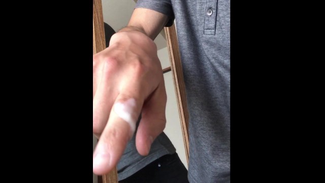 Masturbation in everyday clothes on holidays! Semen entwined in the hands!
