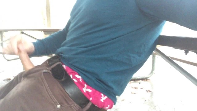 I'm jacking off at the campground on a rainy day in the public pavilion