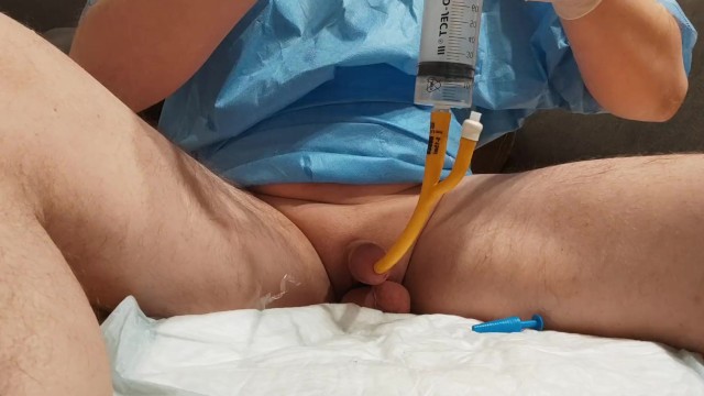 Filling the bladder with saline solution with a 30FR catheter, urination and urinary fountain :-)