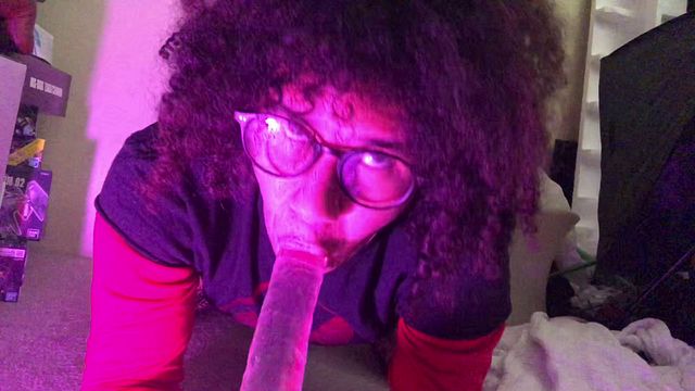 Thick Femboy Plays Around and sucks a 7 inch dildo for spooky season