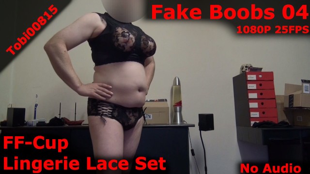 Fake Boobs 4: FF-Cup in short lingerie lace top and pants. Strapon Tits