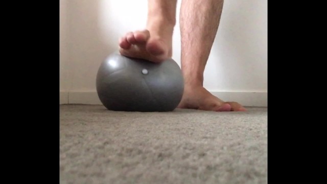 Super squishy gym ball under my big male feet tiny ball makes my feet feel enormous - MANLYFOOT