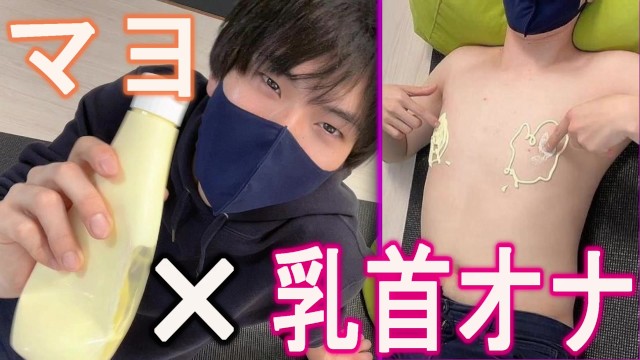 A Japanese boy who stimulates his nipples with mayonnaise. He has dry orgasm.