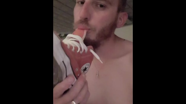 Je leche ma converse et crache dessus, viens te branler