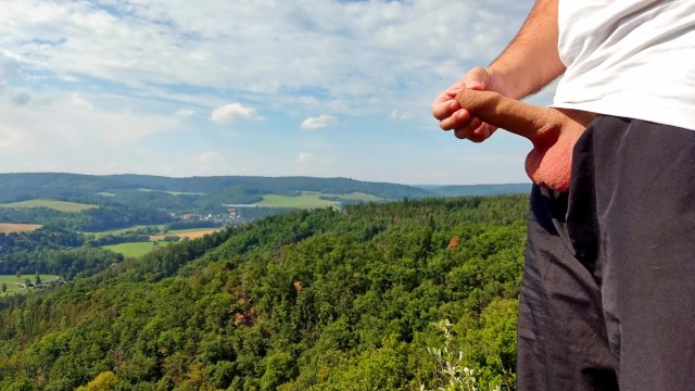 Four cum in a row with beautiful view