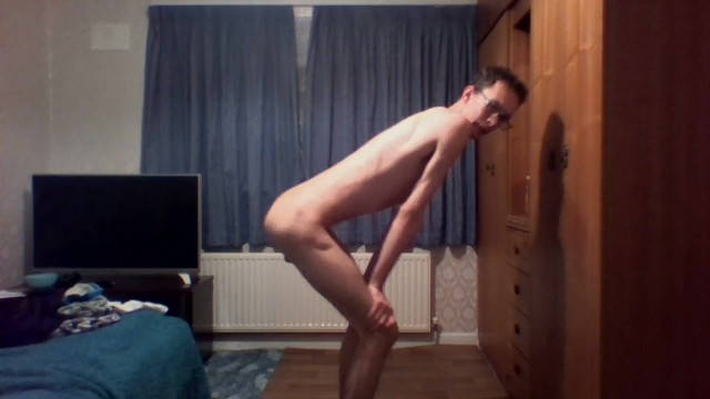 Very skinny boy shows off ribs and flexes his bones while masturbating