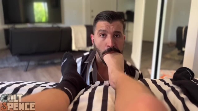 Colt Spence gets his big sweaty jock feet serviced by eager Nick Charms