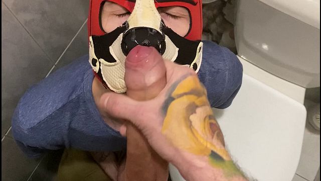 I fuck my friend in the mouth with a big dick and cum on his face in the toilet