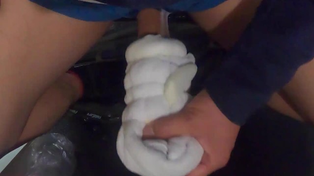DIYタオルオナホでオナニー