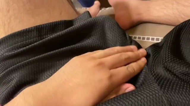 Chub gets horny in gym shorts rubs dick on foot until he cums