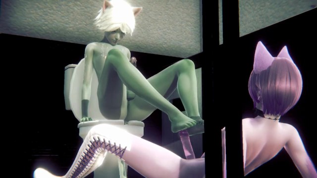 Furry Yaoi grey cat boy and pink cat boy sex in public toilet