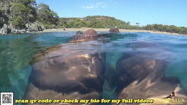 fasihon pantyhose and leotard tease in public sea