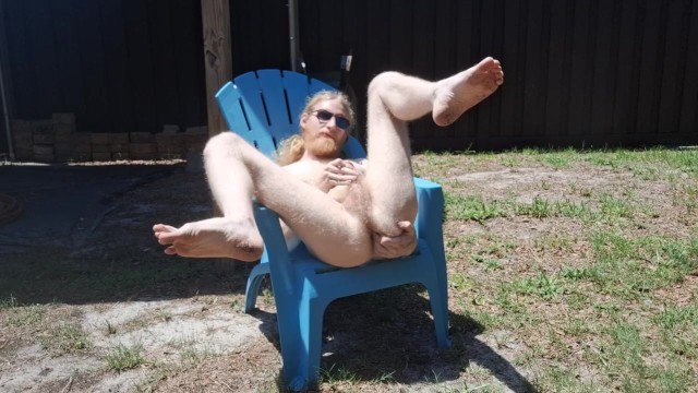 Nudist basks in the sun with his cock and ass out for display