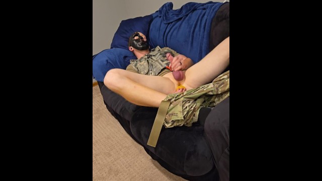 Bi curious Straight army guy CUMS WHILE PUTTING A DILDO IN GIS ASS!