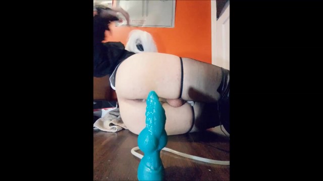 Femboy Yorha 2Bitch takes giant T-Rex cock and cums 5 times