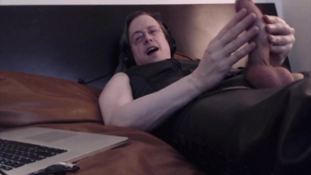 I came on my chin! Online leather wank