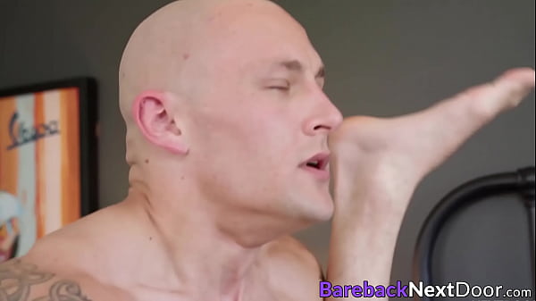 Bald muscular dude stuffs his homo lovers ass with hard cock