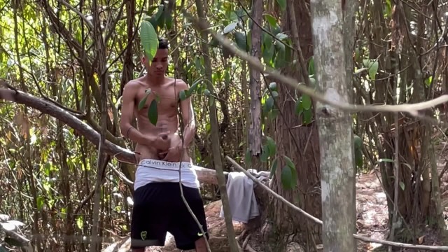 A curious straight guy saw me masturbating in the woods and ended up fucking us