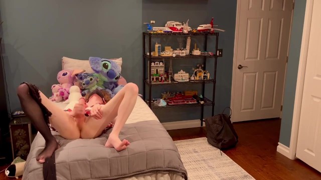 Femboy schoolgirl trap gets home and can’t resist playing with her cock and hole.