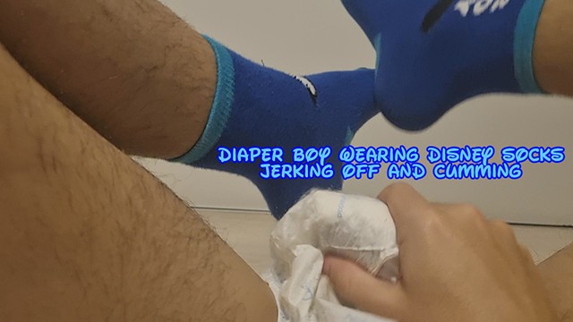 Diaper Man Wearing Disney Socks Jerking Off And Cumming