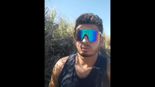 Manly and masculine twink touching each other in the sea outdoors - Latino