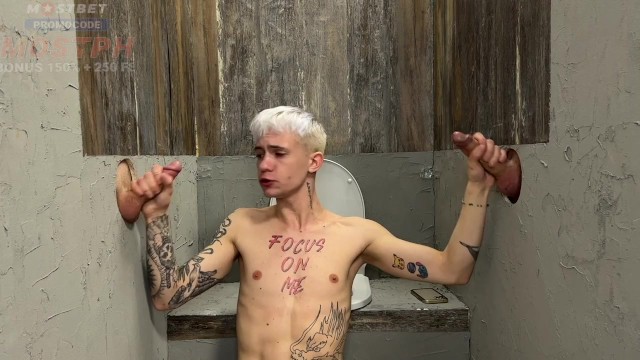42 The guy didn't expect that his mouth and ass would be fucked through these toilet holes