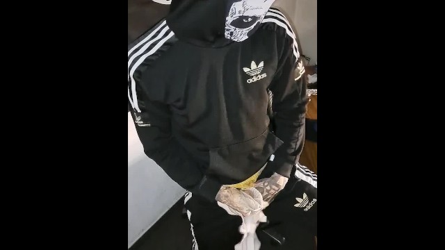 scallyboy in Adidas wanks and cum in his spermy Jockstrap