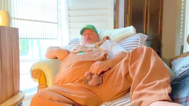 Bib overall farmer chub bear huge feet shoots large load