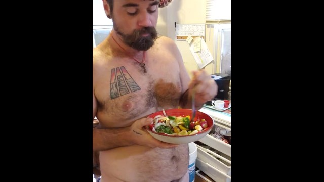 Naked salad toss: eating and hanging out with my dogs