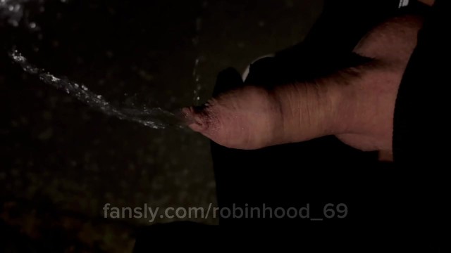 Horny piss outdoor during night. From foreskin uncut cock