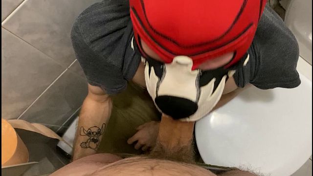Young guy sucks deepthroat big cock in public toilet