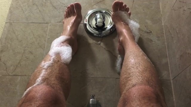 Muscular Hunk Girth Teases With Size 14 Feet In Dress Socks