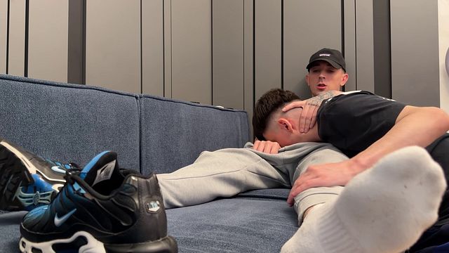 Bottom sniffs sweaty socks and gets a creampie