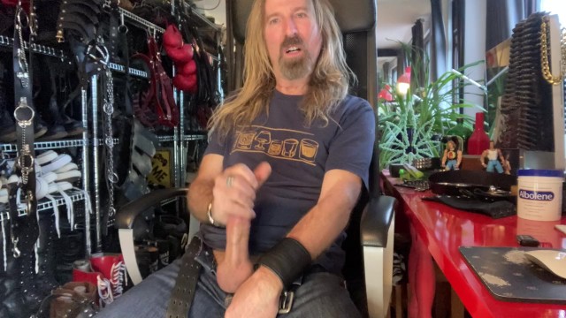 Longhairdude shoots massive load in the chair - jeans and a tshirt - widescreen