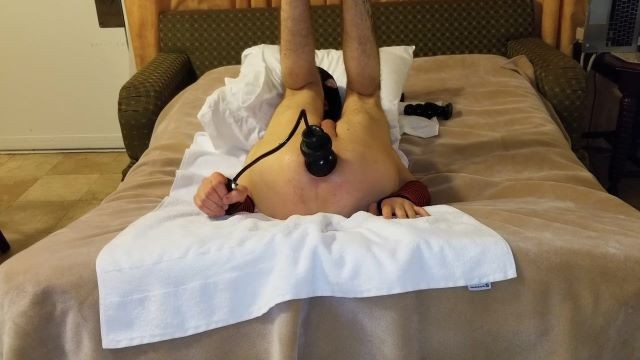 Skinny expanding his anus with huge inflatable butt plug